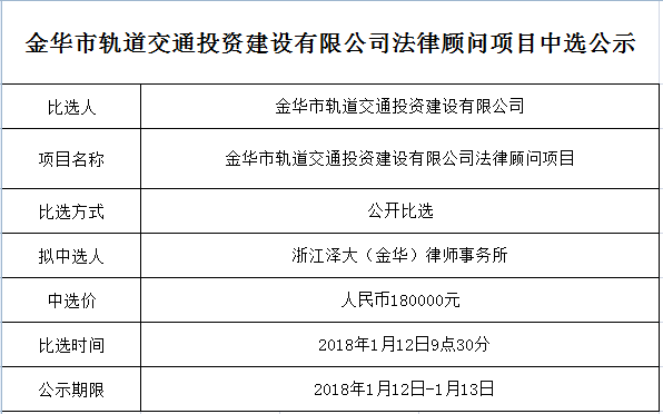 金華市金義東軌道交通有限公司運營環(huán)境長效管理系統(tǒng)項目中標候選人公示
