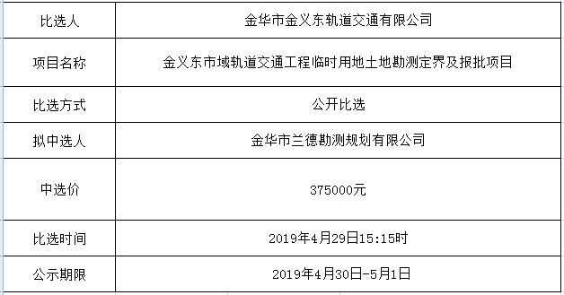 金華市金義東軌道交通有限公司運營環(huán)境長效管理系統(tǒng)項目中標候選人公示