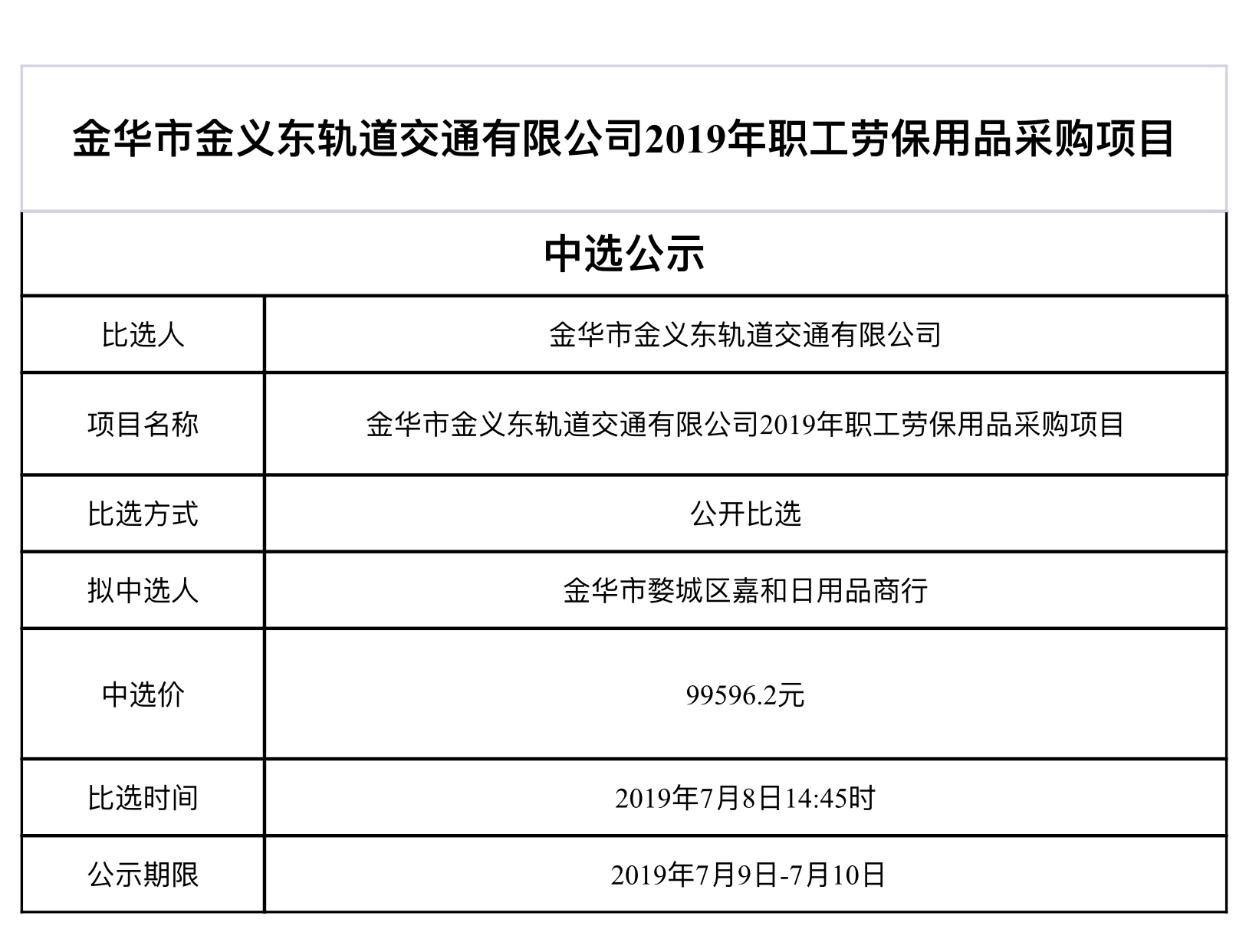 金華市金義東軌道交通有限公司運營環(huán)境長效管理系統(tǒng)項目中標(biāo)候選人公示