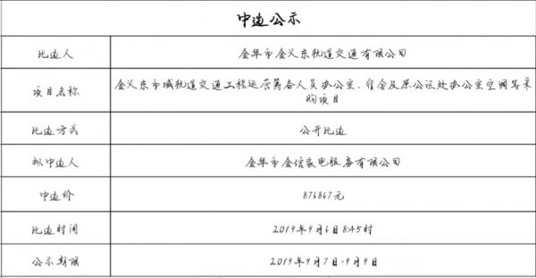 金華市金義東軌道交通有限公司運(yùn)營(yíng)環(huán)境長(zhǎng)效管理系統(tǒng)項(xiàng)目中標(biāo)候選人公示