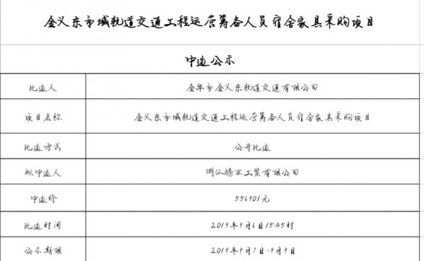 金華市金義東軌道交通有限公司運營2026-2028年度場段司機公寓床上用品采購項目中標(biāo)候選人公示