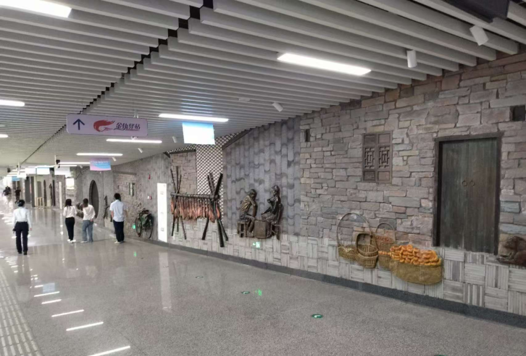 在高鐵換乘通道中的傳統(tǒng)文化長廊,有老金華的故事,也有享譽全國的金華特產(chǎn)—金華火腿和金華酥餅,不僅向外地游客展示了金華的傳統(tǒng)文化魅力,也讓歸鄉(xiāng)的游子感受到家鄉(xiāng)的溫暖。
