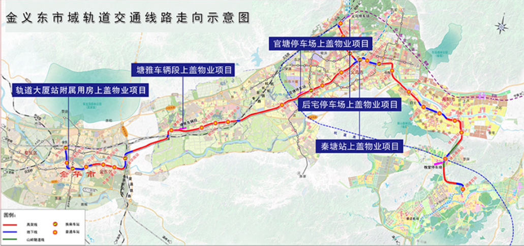 金義東市域軌道交通工程總投資346.83億元,是金華市有史以來最大的投資項目,線路總長107.17公里,共31座車站(秦塘站計為2座),地下站13座(秦塘站計為2座),高架站18座,設一段三場和1座控制中心,金義線計劃于2021年通車。