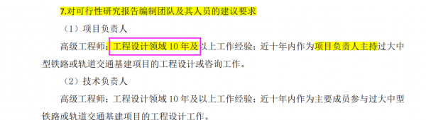 答: “工程設(shè)計領(lǐng)域10年及以上工作經(jīng)驗”可通過畢業(yè)時間結(jié)合工作內(nèi)容(或工作崗位或工作業(yè)績)來證明,同時近10年內(nèi)作為項目負(fù)責(zé)人主持過大中型鐵路或軌道交通基建項目的工程設(shè)計或咨詢工作。
